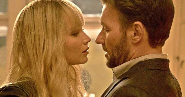 Nesse começo ainda é tudo muito próximo do livro, embora já tenha algumas diferenças, como o nome do tio da Dominika, que no livro é Vanya e no filme é Ivan. Mas primeiro vamos discutir um pouco o filme, e depois eu falo das semelhanças e diferenças com o livro. O filme tem duas horas e vinte minutos de duração, então é até bem longo, mas ainda assim as coisas se passam meio rápido, já que são muitas informações, se for pensar que o livro tem 423 páginas. Nisso, a adaptação acabou perdendo a profundidade dos personagens, alcançando um score de 48% no Rotten. O consenso geral foi que, apesar de uma performance comprometida da Jennifer, o filme não consegue superar os personagens rasos e enredo confuso. Achei a crítica meio pesada, mas realmente, o destaque em termos de atuação é a Jennifer, enquanto Joel fica um pouco apagado no papel de Nathaniel. O filme é um pouco confuso, e talvez eu não tivesse entendido algumas coisas se não tivesse já lido o livro antes, mas ele ainda é um bom entretenimento e tem algumas sacadas interessantes em relação ao livro. Não diria que é um filme cansativo, mesmo sendo bastante longo, o que também é um ponto positivo. No final, creio que ele consegue surpreender em alguns aspectos do roteiro, tanto para quem já leu quanto para quem nunca leu o livro, até porque ele faz umas adaptações bem drásticas em especial no desfecho.