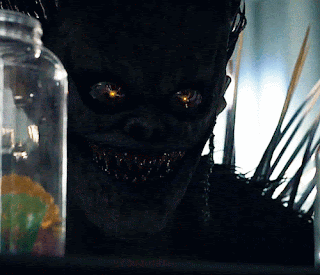 O Ryuk no filme é um pouco assustador e infelizmente não mostra muito o seu rosto, eu adoraria poder vê-lo. O nosso casal perturbado fica ainda mais perturbado quando um investigador L. começa a ameaçá-los, só que Light tem limites, mas Mia não – o que a torna bem mais perigosa que o Light e em vários momentos eu desejei a morte dela, de ambos na verdade – confesso que nunca fui fã do Kira e sim do L.