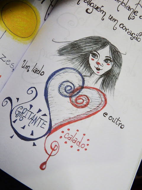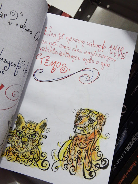 Em relação ao livro em si, a estética é incrível. Tem uma capa linda. Mas, em algumas páginas as palavras e desenhos não aparecem completamente, ficando muito próximas ao miolo. Como o livro já está indo para a segunda edição, imagino que isso não acontecerá.