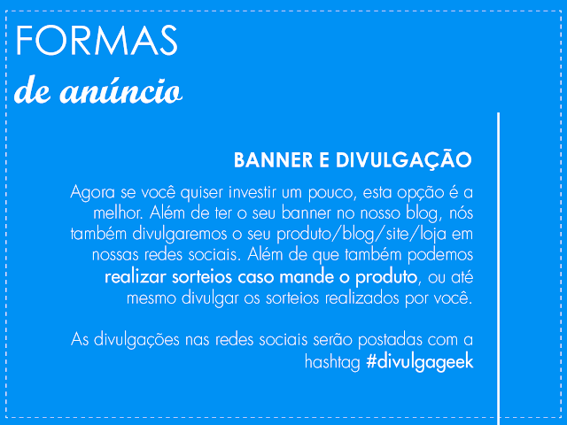 Você quer anunciar seu site/blog/loja/produto aqui no Cantinho Geek? É simples, envie um e-mail e confira os preços: