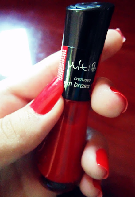 Hoje eu lhes trago um post falando desse esmalte da Vult que comprei em uma loja da Embelleze aqui na minha cidade. O nome do esmalte é Em Brasa, por isso o do nome do post. Hehe. E por favor, ignorem o machucadinho que está no meu dedo. Eu bati ele na mesa e cortou e eu não consegui de forma alguma tirar alguma foto que prestasse da outra mão. E eu não tenho tripé nem nada que sustente a câmera, sendo assim, realmente não deu para trocar de mão.