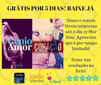 Geeeeeente, a autora Li Mendi (um amor de pessoa) nos deixou um presentão que durará 5 dias inteirinhos. Quem aqui gosta de livros gratuitos? Pois, nesse post, teremos SEIS obras completas totalmente de graça e você poderá curtir o fim de semana todo lendo. Confira a lista completa das obras na Amazon: