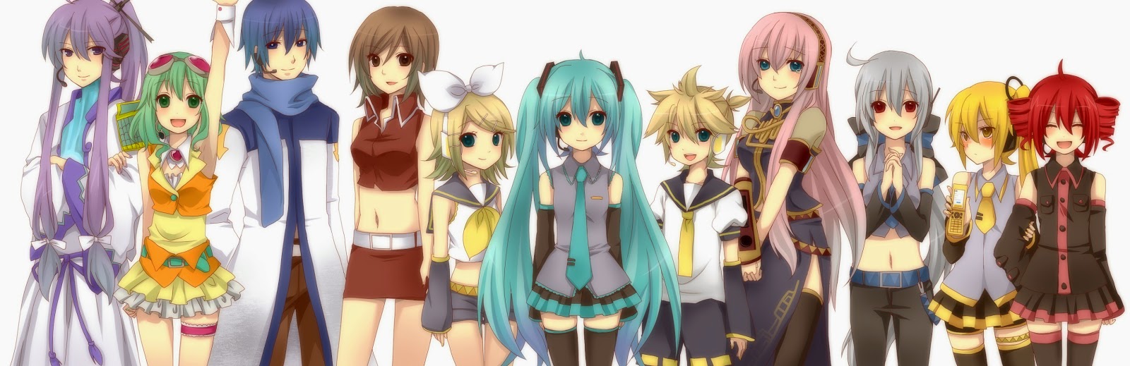Mas o que a imagem do post tem a ver com estes sintetizadores de voz? Calma que eu ainda vou explicar! A Crypton utiliza os mascotes, ou melhor, para cada voz, se te um personagem que se identifica com a voz. E não é que a ideia deu certo? Eles não são apenas mascotes, eles são cantores, sim, os nossos queridos cantores virtuais! O primeiro vocaloid foi lançado em 2004, mas só fez sucesso mesmo em 2007 com o lançamento da Hatsune Miku! Creio que já devem ter ouvido muito este nome, pois ano passado (2014) ela abriu os shows da diva pop Lady Gaga! Atualmente a Crypton possui apenas 6 vocaloids que são: Hatsune Miku, Megurine Luka, Kagamine Len, Kagamine Rin, Meiko e Kaito. Mas não existem só estes não. Outras empresas criaram seus próprios sintetizadores de voz e que também são famosos. Estes são: Megpoid Gumi, Kamui Gakupo, IA, SeeU, Lily, e vários outros. Hoje em dia se tem tantos sintetizadores de voz que já perdi a conta. E claro que alguns são mais famosos que os outros. Abaixo são os Vocaloids da Crypton: